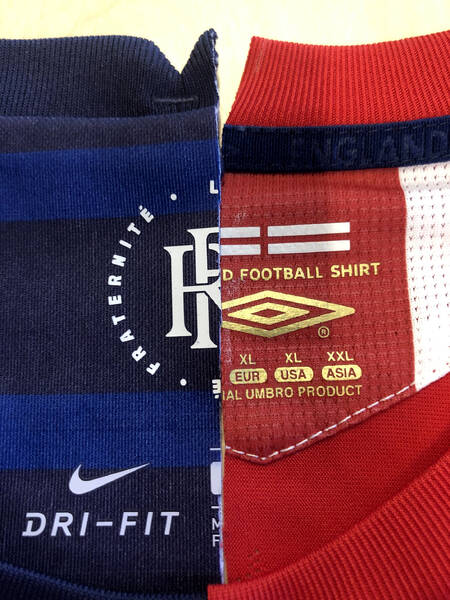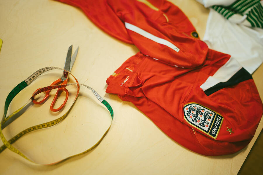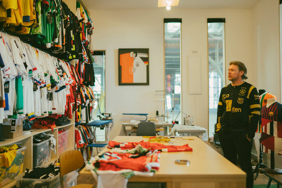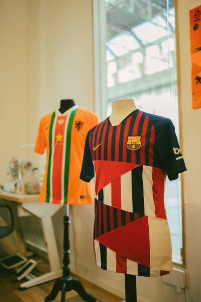 The Blood in Blood out project was started back in 2004 as a design research on Heraldry (creating coat of arms) and especially the part ‘Marshaling’: dividing crests. I used football shirts to express this visual language in a new form and started to exhibit the collection of divided shirts internationally. I was able to tell stories within one or with more shirts together. Stories on rivalry, cultural connections, about relations between countries, cities, clubs and eventually of people.